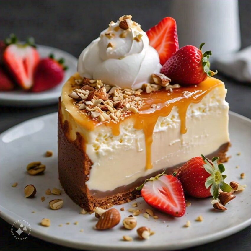 10. Top with fresh fruit (optional): Top the cheesecake with fresh fruit, such as strawberries or blueberries, and sprinkle with granulated sugar.