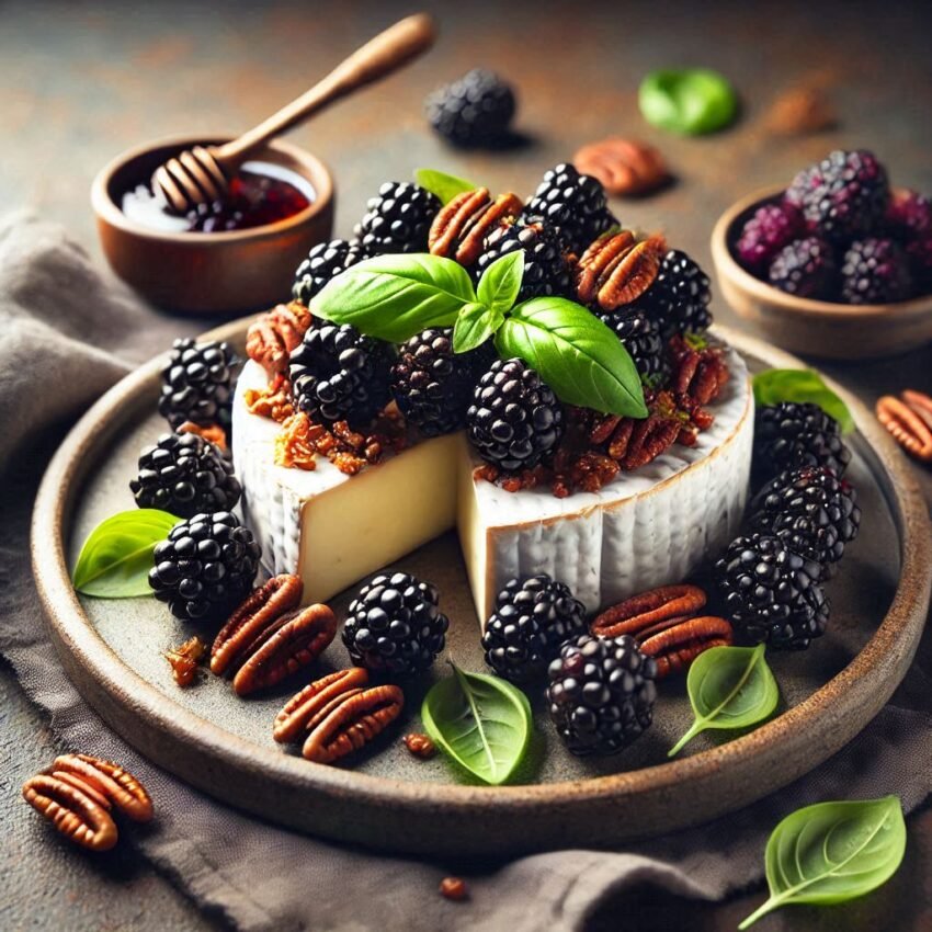 2. Assemble the Brie: Place the Brie wheel on a serving plate or board. Spread the blackberry jam over the top of the Brie.