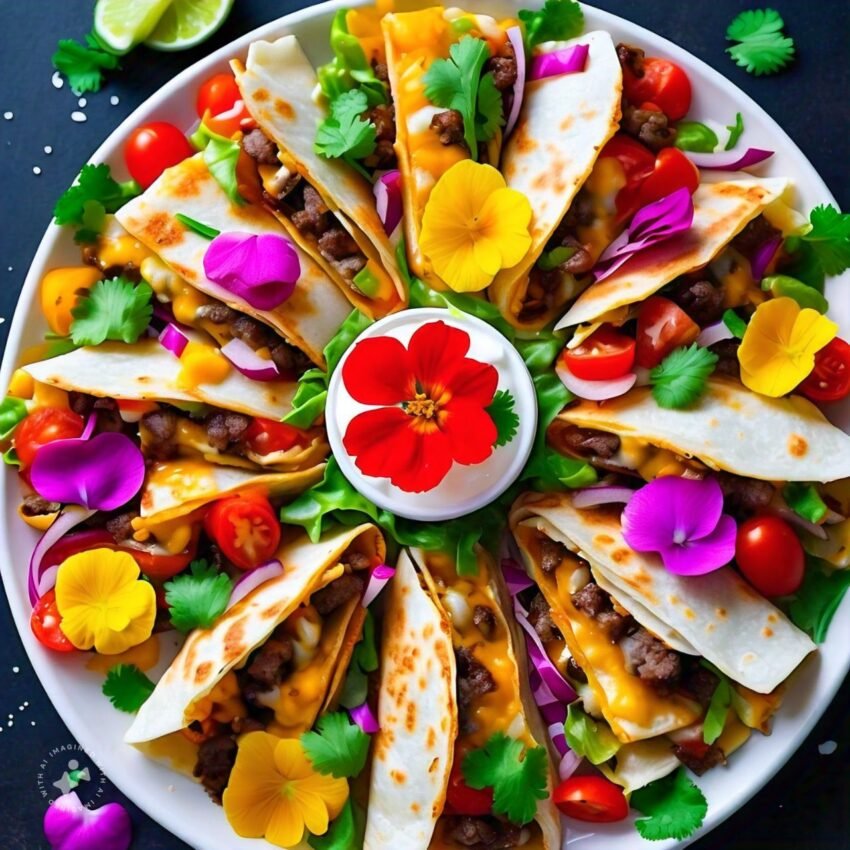 3. Assemble quesadilla ring: Arrange tortillas in a circular pattern, overlapping each tortilla slightly to form a ring.