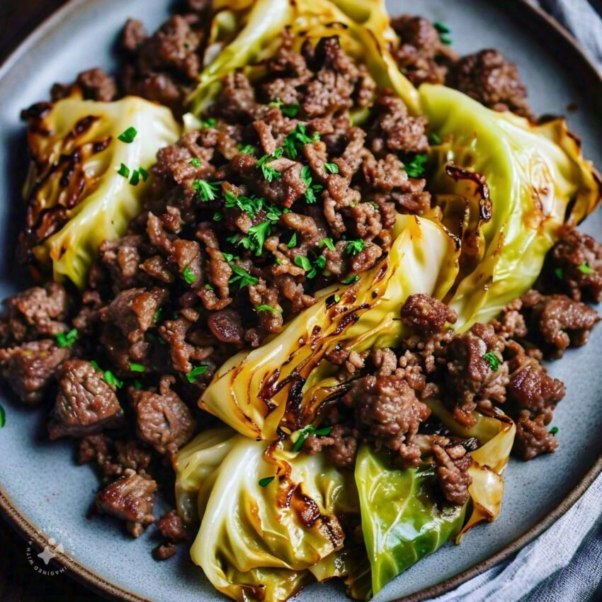 7. Serve: Serve the cabbage and ground beef stir-fry hot, garnished with chopped green onions or sesame seeds (optional).