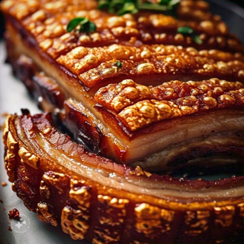 – Serve the crispy pork belly with your favorite sides, such as roasted vegetables, mashed potatoes, or a salad.