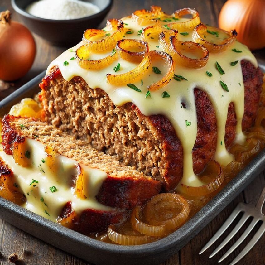 4. In a small bowl, mix the French onion soup mix and beef broth. Pour the mixture over the meatloaf.