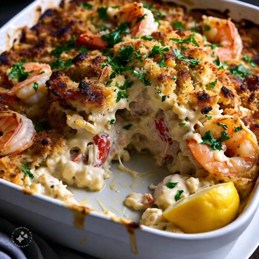 Here’s a recipe for a Decadent Crab and Shrimp Casserole: