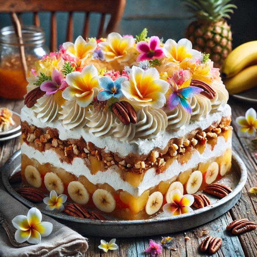 This cake is inspired by Elvis Presley’s favorite sandwich, which consisted of peanut butter, banana, and bacon. The cake has become a popular tribute to the King of Rock ‘n’ Roll
