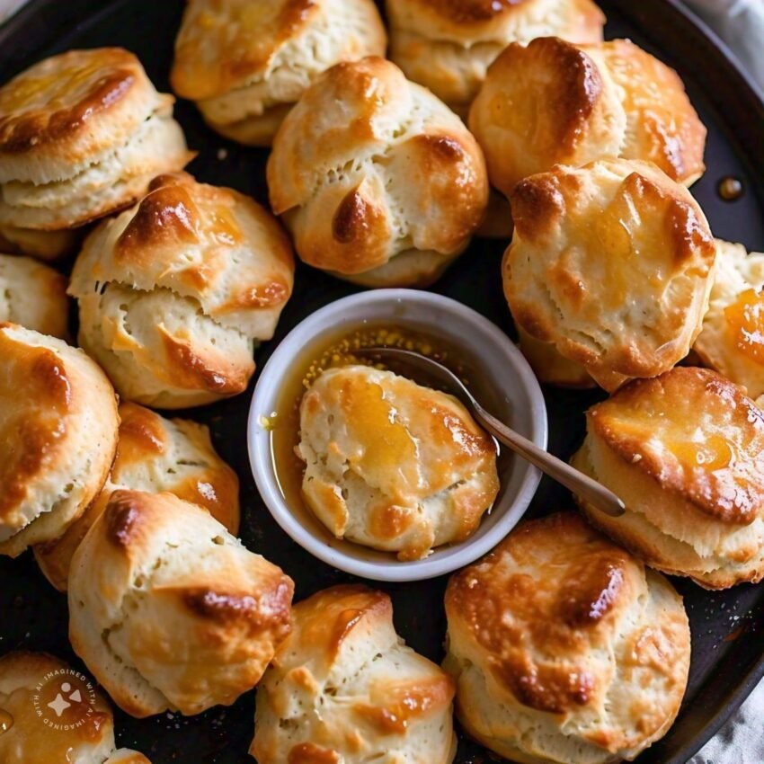8. Bake the biscuits: Place the biscuits on the prepared baking sheet, leaving about 1 inch (2.5 cm) of space between each biscuit. Brush the tops with a little extra melted butter.