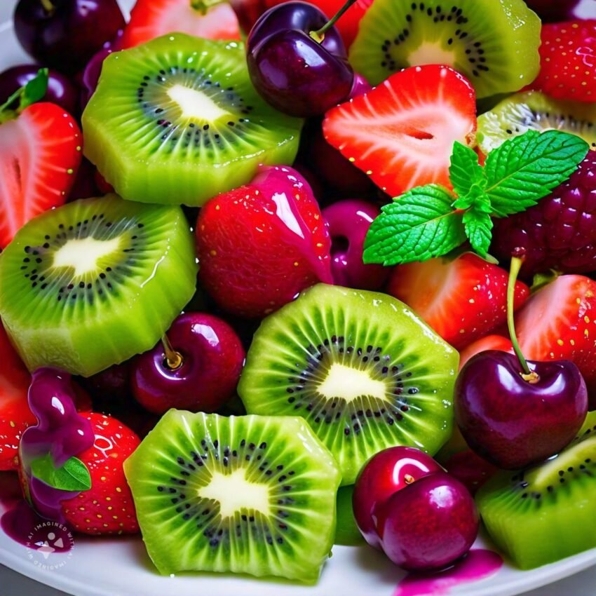 1. In a large bowl, combine the sliced kiwi, strawberries, and cherries.