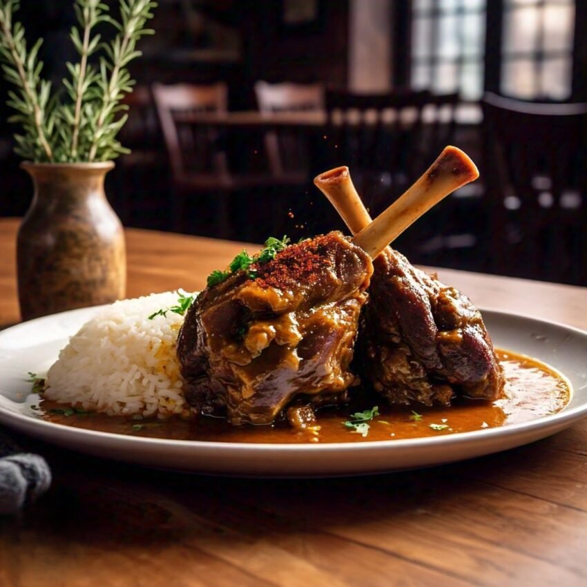 Enjoy your delicious Braised Lamb Shanks with Rice!