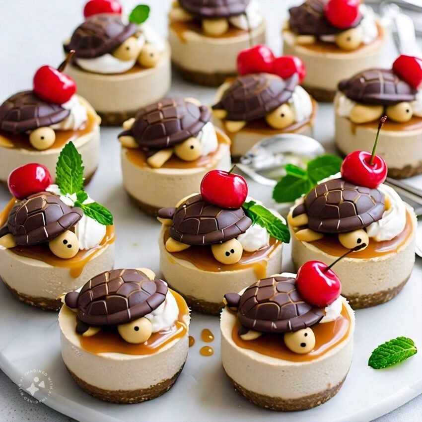 5. Add the caramel and chocolate: Drizzle the caramel sauce over the cheesecakes, followed by the melted chocolate chips.