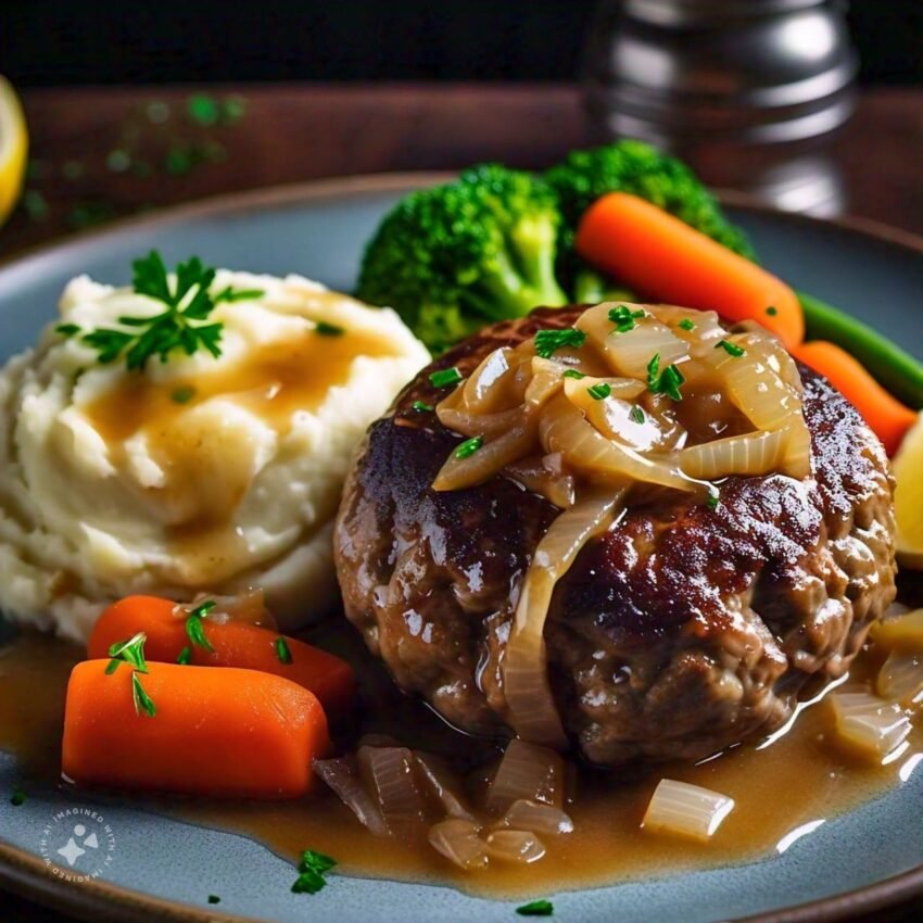 5. Serve: Serve the Salisbury steak patties with the homemade gravy spooned over the top. Traditionally, Salisbury steak is served with mashed potatoes, roasted vegetables, or egg noodles.
