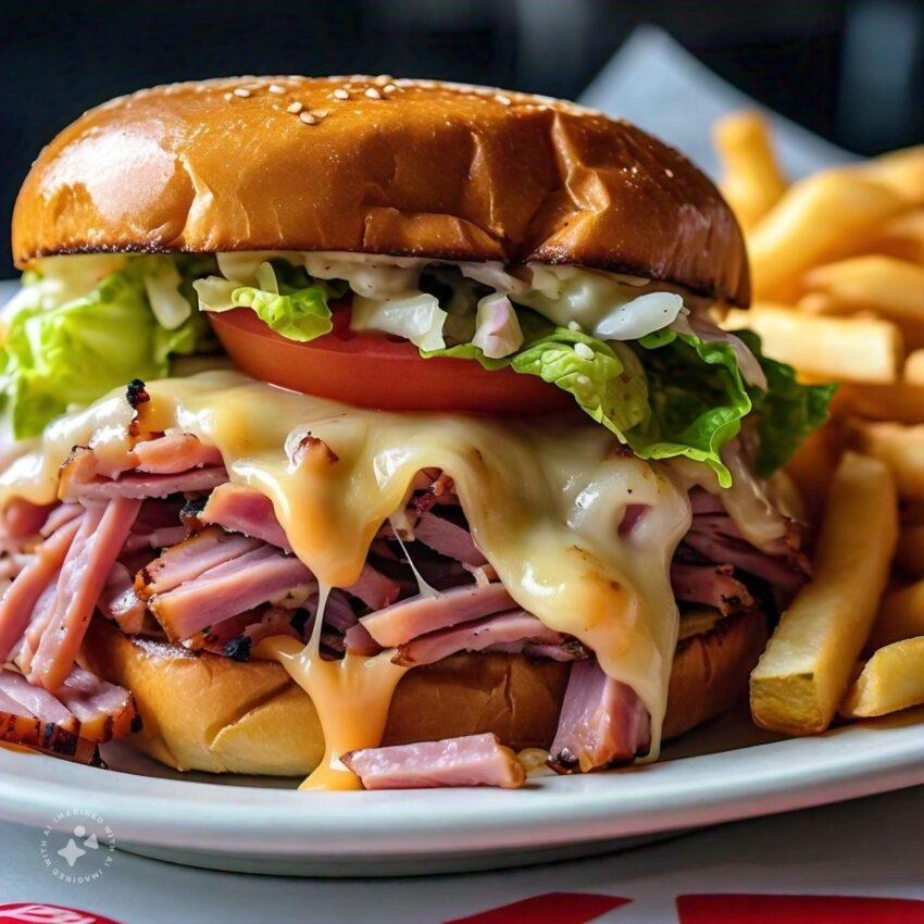 On two slices, layer pulled ham, shredded cheese, and caramelized onions (if using). Top with the remaining slices of bread.