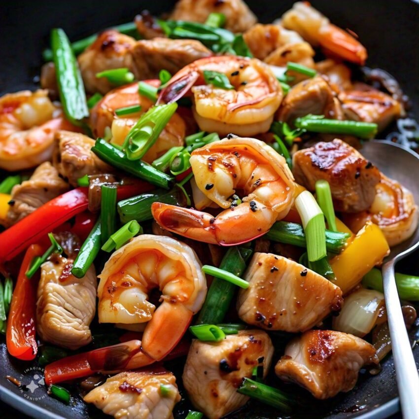 5. Return chicken and shrimp, add sauces: Add cooked chicken and shrimp back to skillet. Stir in soy sauce, oyster sauce (if using), and sesame oil. Cook for an additional 1-2 minutes, until sauce has thickened.