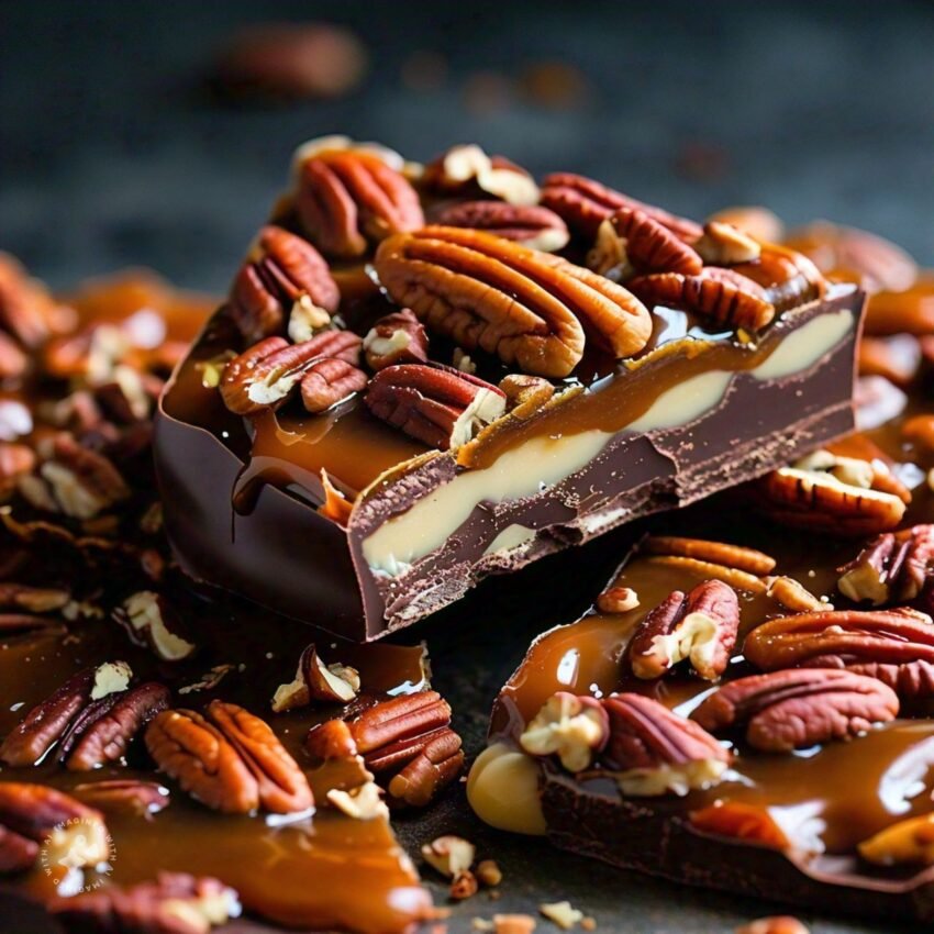6. Drizzle with milk chocolate: Drizzle the melted milk chocolate over the pecan layer.