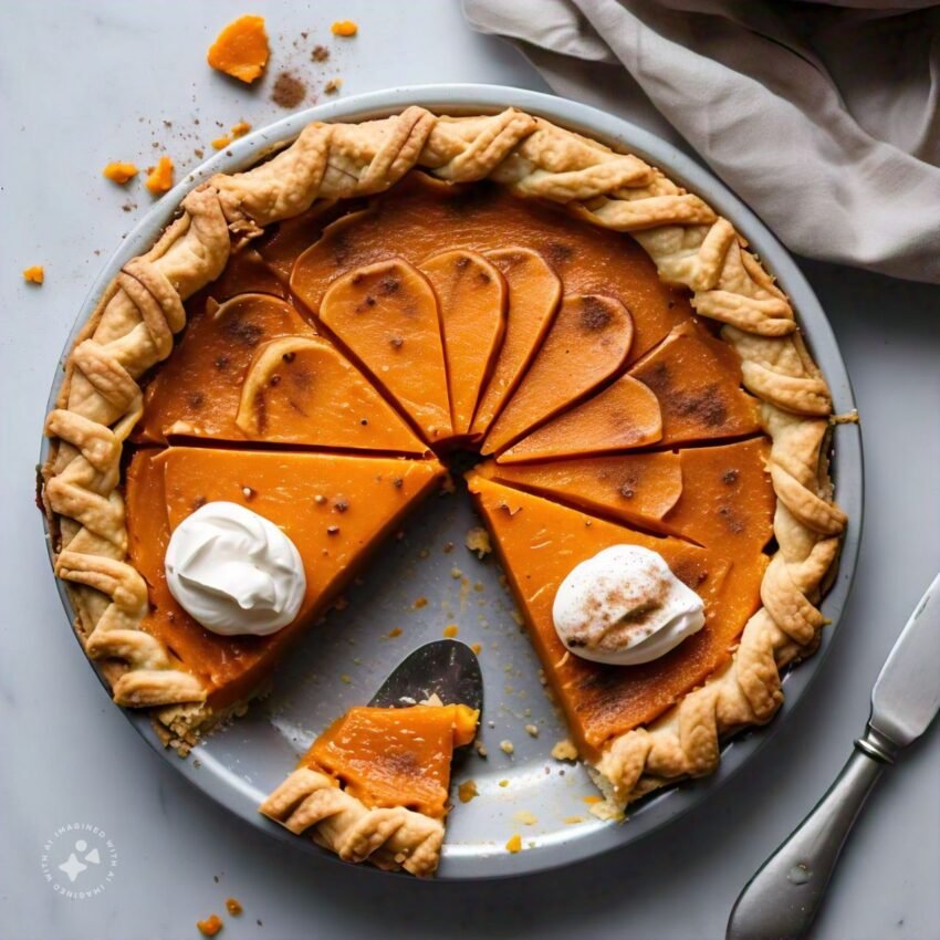 4. Fill the pie crust with the sweet potato filling and smooth the top.