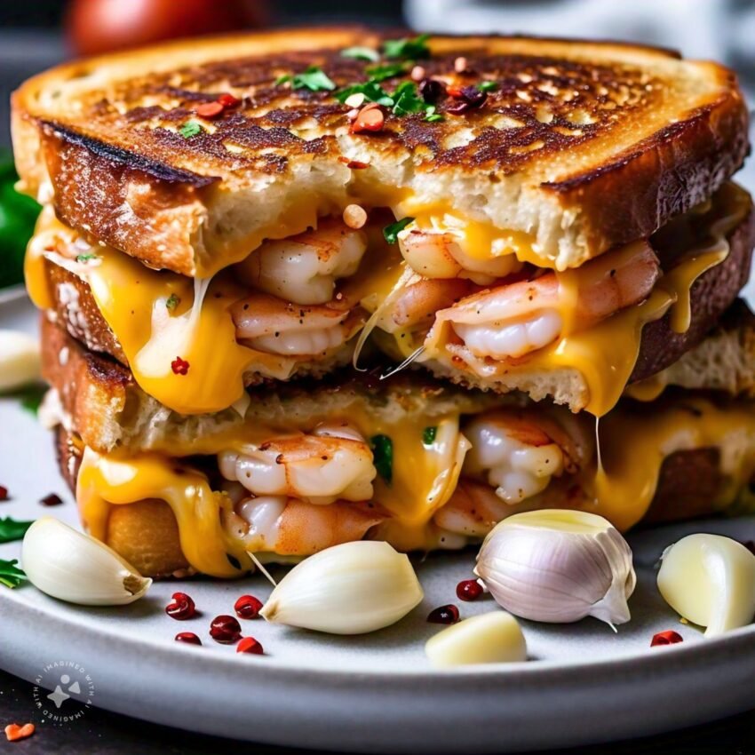 6. Top with a slice of cheese, a few grilled shrimp, and a dollop of mayonnaise.